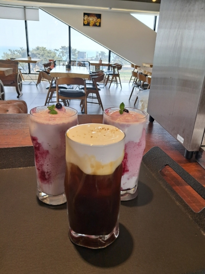 제이커피는 울산 동구 주전몽돌해수욕장까지 차로 5분 거리에 위치해 있으며 카페 창 밖으로 보이는 주전항의 아름다운 뷰를 품은 캠핑카페이다. 내부는 인테리어가 두 가지 콘셉트로 되어 있으며 오션뷰와 마운틴뷰를 모두 감상할 수 있는 매력적인 카페이다. 오션뷰 측은 현대식 원목 탁자 테이블로 엔틱 한 콘셉트로 꾸며져 있고 마운틴뷰 측은 캠핑 콘셉트로 캠핑의자와 테이블에 앉아 인테리어 소품으로 된 난로 앞에서 차 한잔을 즐길 수 있는 콘셉트로 꾸며져 있다. 캠핑카페 제이는 앉아서 해녀의 물길질을 볼 수 있는 깨끗한 동해 바다와 4계절 색색 다른 산을 보며 힐링하고 쉴 수 있는 편안한 카페이다.