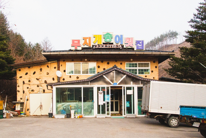 싱싱하고 쫄깃한 송어회 맛집으로 착한 가격, 청정한 공기와 선홍색의 살의 빛깔이 곱고 잡내 하나 없는 맛을 느낄 수 있는 전문점이다. 일회용 앞치마가 있고 국내산으로 이뤄진 요리들이어서 믿고 먹을만 하다. 산장같은 이테리어로 아늑하고 나무에 둘러싸인 듯한 느낌으로 음식을 즐길 수 있다. 근처에 오토캠핑장이 위치해 있어 계방산 캠핑하며 방문하기에도 좋은 송어횟집이다.