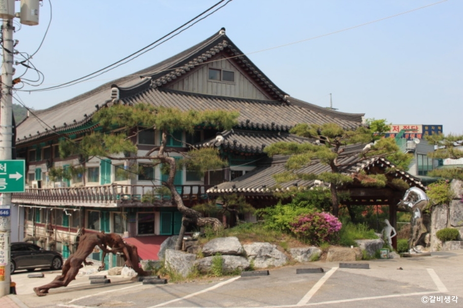 갈비생각은 포천시 광릉수목원으로 가는 입구에 있는 이동갈비 맛집이다. 축석리 검문소 부근에 큰 기와집이라 찾기가 편리하다. 주차장은 넓은 전용 공간인데 관리를 하는 사람이 여러명이라 이용이 편리하다. 매장이 넓어서 서울, 포천, 의정부에서 가족 모임이나 소규모 단체로 행사 모임을 위해 방문하는 고객들이 많다. 찬은 빛깔고운 동치미, 겉절이, 야채샐러드 등의 기본 반찬과 양념 게장이 나온다. 갈비 집이지만 양념 게장이 맛있는 집이다. 모두 정갈하고 깔끔하다.