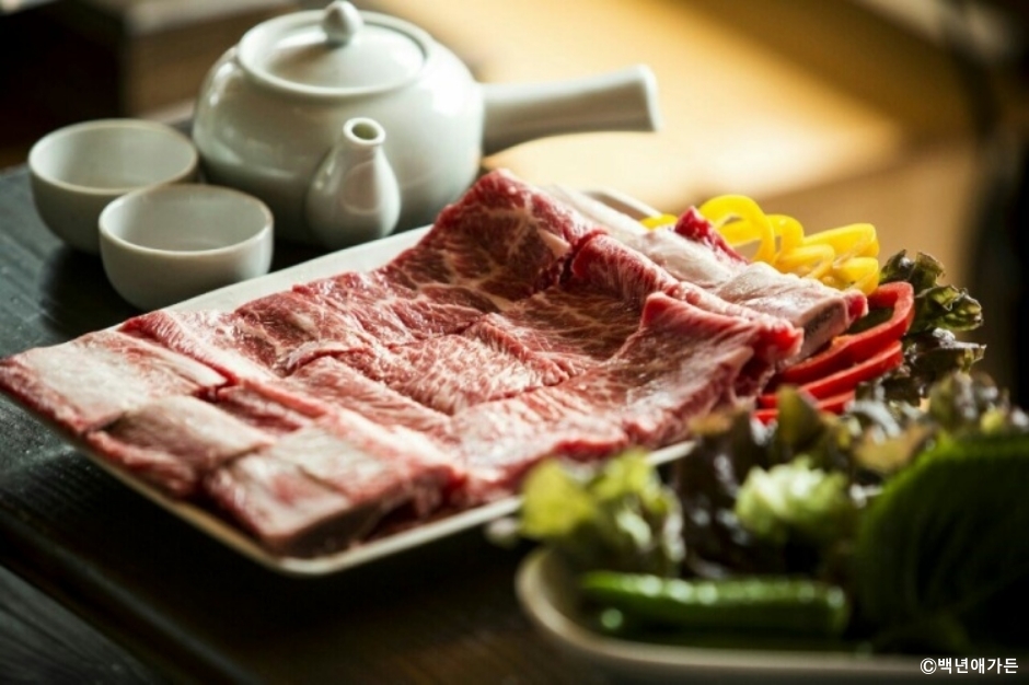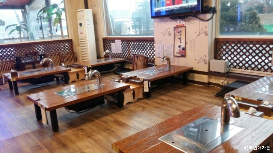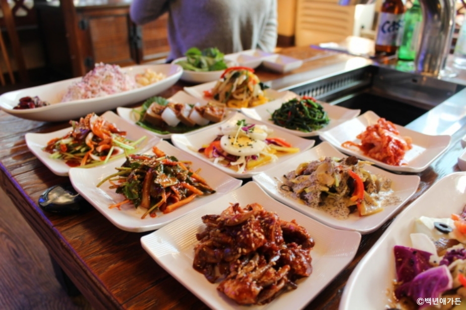 백년애가든은 포천시 일동면에 있는 이동갈비 식당이다. 식당 마당에 162m 지하에서 올라오는 천연 암반수를 이용해 음식을 만든다. 방문객도 퍼갈 수 있다. 갈비를 시키면 한 상 가득 반찬이 차려진다. 육회, 샐러드, 청포묵 무침, 해파리냉채 등 다양하고 알찬 메뉴들이면서 맛도 훌륭하다. 주문한 고기를 맛있게 숯불에 구워 먹은 후 식사는 냉면이나 된장찌개가 가능하다. 식사로 갈비탕을 선택해도 좋다. 천연암반수로 끓여낸 갈비탕이 시원하면서 속이 든든하다. 주차장은 대형 식당이라 매장 앞에 전용 주차장이 있어 편하게 이용할 수 있다.