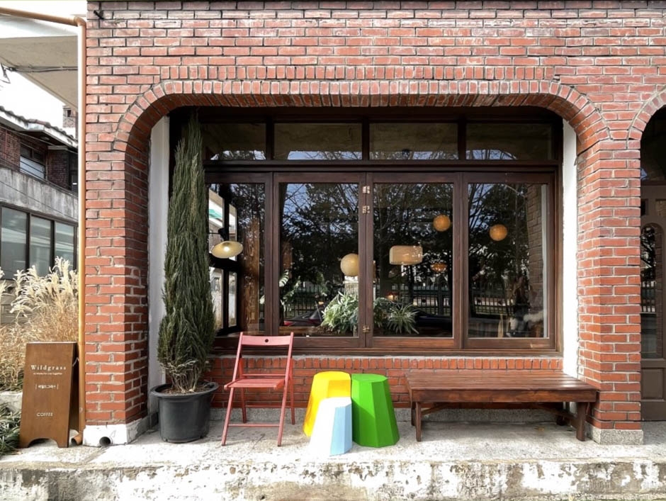 경기도 평택시 비전동에 간판 없는 카페, 와일드그라스는 빨간 벽돌의 주택을 개조하여 만든 곳이다. 내부 인테리어는 콘크리트를 자연스럽게 노출하여 마감해 빈티지한 느낌이 가득하고, 우드 가구와 곳곳에 놓인 식물들이 따뜻한 분위기를 더해준다. 중앙에 쉐어테블이 있고, 안쪽에는 방처럼 분리된 공간이 있어 프라이빗하게 이용할 수 있다.