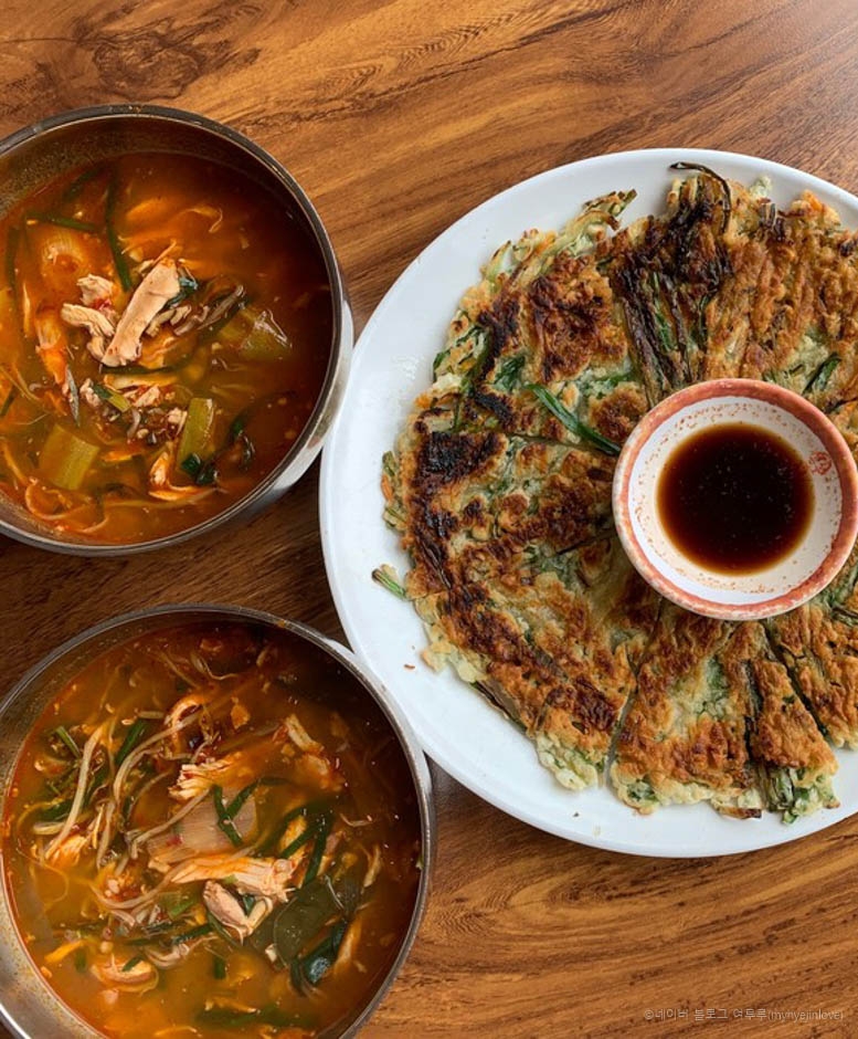 장춘닭개장은 송탄IC 바로 앞에 있고 주차 공간이 넓다. 메뉴는 얼큰닭개장, 맑은닭곰탕, 닭볶음탕, 부추전이 있다. 기본 반찬으로 백김치와 깍두기가 나온다. 얼큰닭개장은 파와 고사리, 숙주나물을 베이스로 깊게 우려 끓여 나온 닭개장으로 칼칼한 맛이지만 더 매운맛을 원하면 청양고추를 요청하면 된다. 매운 음식을 좋아하지 않는 사람을 위한 맑은 닭곰탕은 담백하고 깔끔한 맛이다. 식사 후 차로 11분 거리에 고덕수변공원을 방문하면 좋다.