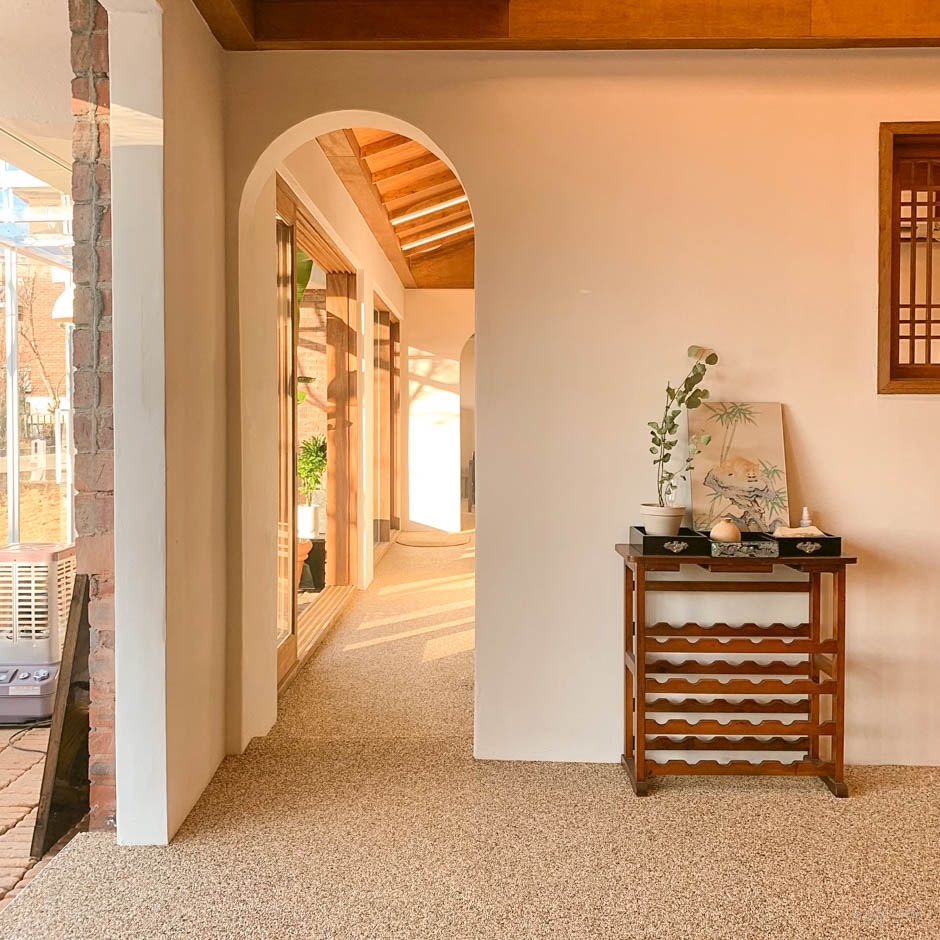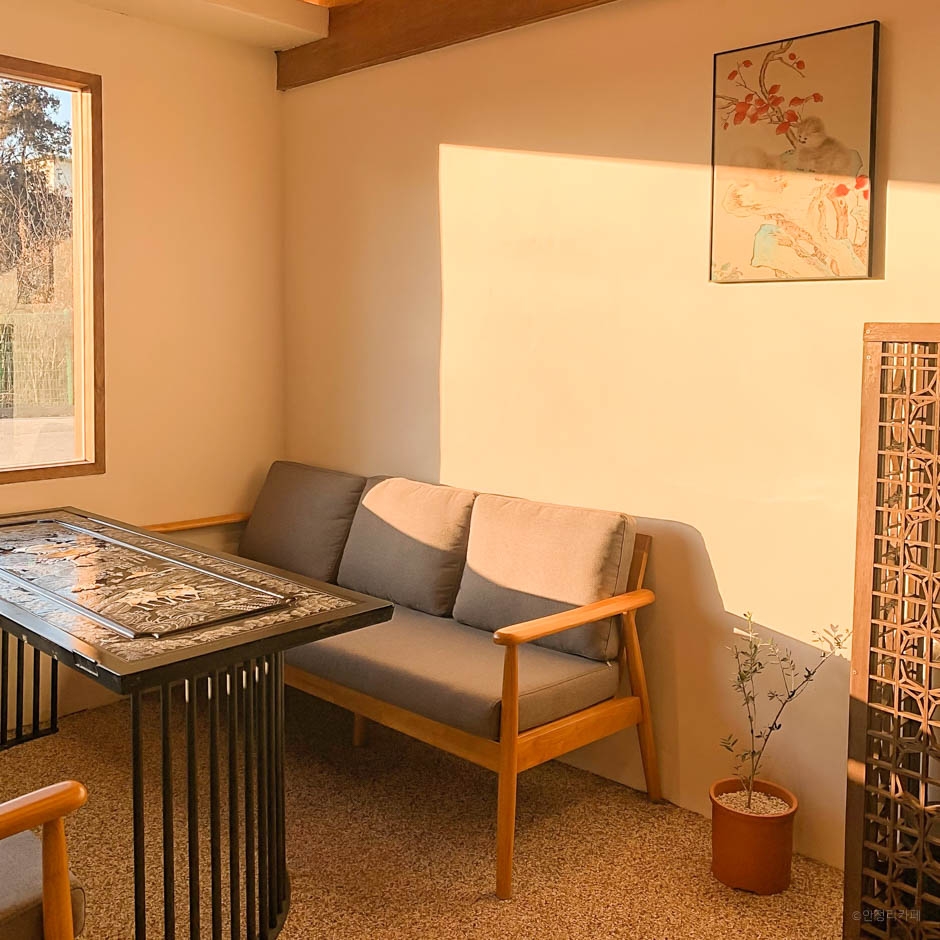 안정리커피는 구옥을 개조하여 만든 카페이다. 통유리창으로 되어 있어서 탁 트인 개방감을 느낄 수 있다. 야외에도 테이블이 있는데, 캠핑 분위기로 꾸며져 있으며, 요청 시에 모닥불을 피워준다. 카페 내부는 할머니 집에서 봤음 직한 자개농을 테이블로 활용하였고, 현대적인 인테리어까지 더하여 감성이 한층 살아있다.