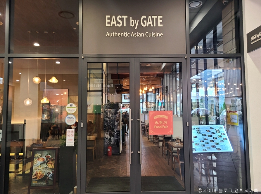이스트바이게이트 현대 프리미엄아웃렛 송도점은 인천지하철 1호선 테크노파크역 2번 출구 아웃렛 상가 1층에 있다. 주차는 매장이 있는 건물에 할 수 있다. 이곳은 타이푸드를 기본으로 동남아시아를 비롯한 아시아의 대표적인 요리를 한자리에서 선보이는 퓨전 요리 전문점이다. 내부는 깔끔하고 쾌적하다. 벽돌, 우드의 따뜻한 톤에 와인잔도 세팅되어 있어 고급스러운 바 느낌도 든다. 좌석 간격이 넓은 편이며 사이 칸막이가 설치되어 있다. 외부에는 테라스 테이블도 있다. 대표 메뉴는 뿌팟퐁커리, 바질포크래터스랩이다. 이외 쏨땀, 팟타이 꿍, 카우팟 뿌, 나시고랭, 똠얌꿍이 있다.