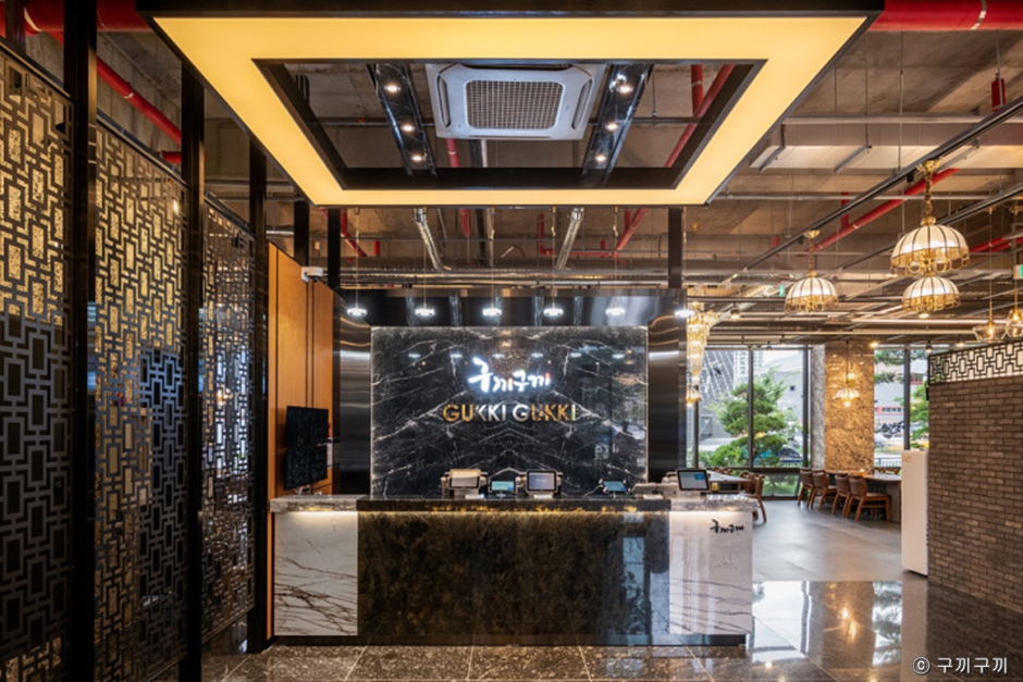 구끼구끼 민락본점은 의정부 민락동에 있는 참숯갈비 전문점이다. 넓은 홀과 룸을 갖추고 있으며 대규모 회식이나 모임도 쾌적하게 즐길 수 있다. 돼지갈비+냉면 또는 된장찌개, 공깃밥을 선택할 수 있는 가성비 좋은 메뉴이다. 기본 밑반찬으로 잡채, 게장, 단호박, 김치, 샐러드 등이 깔끔하고 정갈하게 나온다.