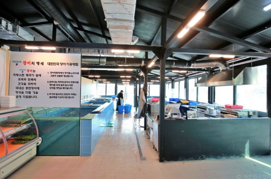 대한민국 장어는 경기도 이천시 신둔면에 있는 장어 전문점이다. 실내가 쾌적하고 좌식 테이블과 입식 테이블이 모두 있다. 야외 공간이 넓고 좌석도 많아 캠핑의 느낌도 즐길 수 있다. 식당 입구 옆에는 장어를 초벌 하는 장소가 있다. 식당 입구 정면에는 다양한 부위의 소고기를 판매하고 있어서 장어를 못 먹거나 선호하지 않는 사람들도 함께 식사를 할 수 있다. 장어는 크기를 선택할 수 있고, 초벌 되어 나오므로 금방 익혀 먹을 수 있다. 밑반찬도 다양한 종류가 정갈하게 나오며 셀프바에서 추가로 이용할 수 있다. 단체 회식을 할 공간이 있고, 건강을 위해 어른들과 함께하는 가족 식사도 좋다.