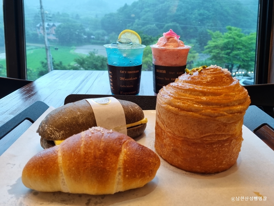 남한산성빵명장은 경기도 광주시 남한산성에 위치한 대형 베이커리카페이다. 내부는 통유리창으로 되어 있어 개방감이 좋고, 2층과 루프탑에도 좌석이 마련되어 있다. 남한산성빵명장은 특허받은 천연 발효종과 100% 유기농 밀가루, 건강하고 좋은 국내산 재료들만을 고집하여 빵을 만든다. 생유산균이 살아있어 빵을 먹고 나서도 속이 편하다. 약 100여 종의 다양한 빵과 사계절 언제나 아름다운 남한산성의 풍경을 만날 수 있는 베이커리이며, 단체석과 잔디가 있는 루프탑도 함께 이용할 수 있다. 남한산성의 자연경관을 배경으로 커피 한잔과 함께 힐링을 하고 싶다면 이곳을 추천한다.