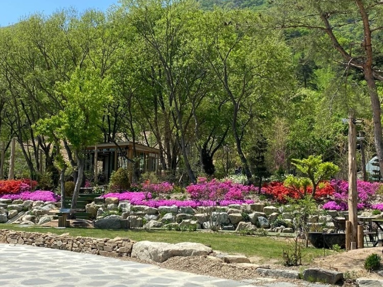 충청남도 계룡시의 멋스러운 한옥카페다. 넓은 정원과 고풍스러운 기와지붕을 얹은 이곳은 카페 내부에서 바라보이는 풍광이 무척 아름답다. 울창한 산으로 둘러싸인 만큼 봄날의 연둣빛과 여름의 초록, 가을의 알록달록함과 겨울의 눈부신 설경까지 사계절의 정취를 오롯이 눈에 담을 수 있다. 햇살 따스한 날에는 야외 테이블에서 싱그러운 바람을 느껴보는 것도 좋겠다. 정원 곳곳에 마련된 프라이빗 한 공간들이 여유롭게 휴식을 즐기기에 제격이다. 카페에선 커피와 티, 에이드, 스무디 등의 음료와 함께 쿠키와 마들렌 같은 가벼운 베이커리를 맛볼 수 있다. 피자와 맥주도 판매하고 있어 보다 느긋하게 쉬어갈 수도 있다.