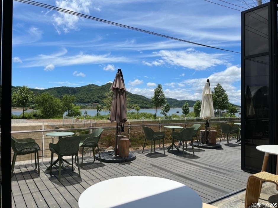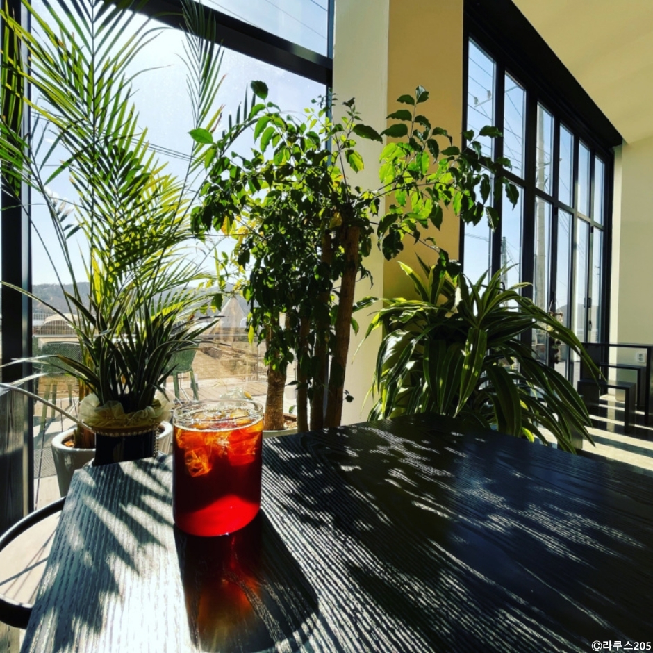 라쿠스205는 이동저수지를 끼고 있는 전망 좋은 카페이다. 실내는 현대적인 인테리어에 화분을 많이 배치했으며 내부 이동은 엘리베이터를 이용할 수 있다. 해 질 녘에 방문하면 이동저수지로 넘어가는 노을을 볼 수 있는 이곳은 산멍 물멍하기에 좋은 카페이다. 커피는 직접 로스팅한 원두를 사용하고 있다. 커피 외 생과일주스, 스무디, 에이드와 각종 디저트를 판매한다.