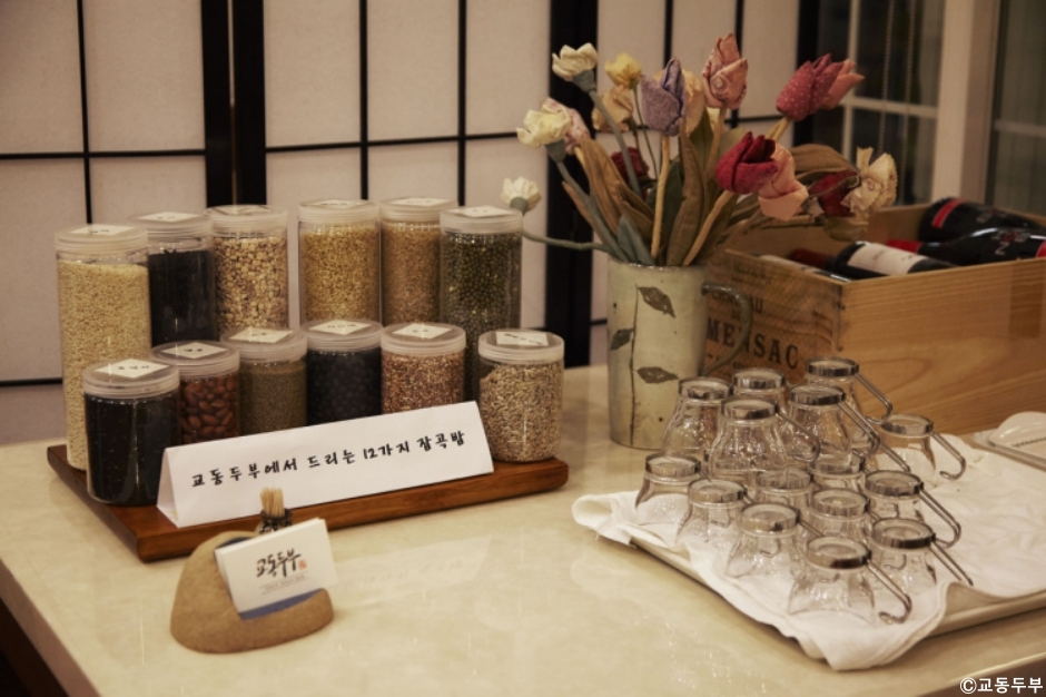 교동두부는 용인시 양지에 있는 두부 전문점이다. 몸에 좋고 맛도 좋은 두부를 매일 아침 만들어 손님상에 내놓는 것으로 유명하다. 식사 전에 제공되는 콩죽은 속을 따뜻하게 해 주며, 두부샐러드에는 싱싱한 야채와 블랙올리브의 궁합이 훌륭하다. 특히 100% 소고기로 만든 촉촉한 떡갈비와 함께 등장하는 수제두부는 그냥 먹어도 고소하고 양념장만 올려도 일품이다. 또한 모둠 세트에는 6시간 동안 참나무로 직접 훈연한 훈제오리, 두부전골이 나오며, 12가지 건강 잡곡밥과 함께 즐길 수 있는 수제두부 한정식으로 제공된다. 양지체육공원 바로 옆이다.