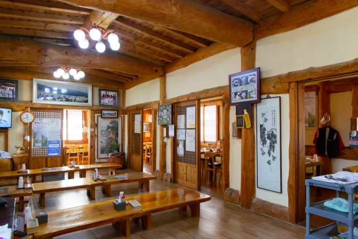 원미식당은 메밀막국수, 메밀전병, 메밀묵 등 다양한 메밀요리를 판매하는 메밀음식 전문점이다. 식당 마당에는 물레방아가 있으며 한옥건물의 식당이 인상적이다. 소설 ' 메밀꽃필 무렵'의 작가로 알려진 이효석 문학관 입구에 자리 잡고 있어 연계관광하기에도 좋은 식당이다. 매장 내부에는 단체석이 있어 단체 모임이나 회식장소로도 좋은 곳이다.