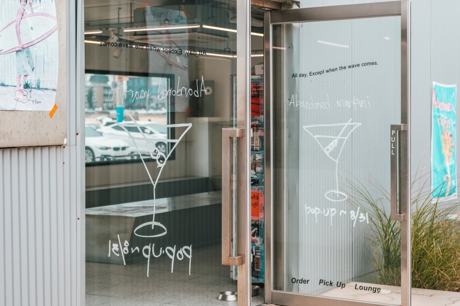 강원도 고성 천진해수욕장 바로 앞에 위치한 서핑 포인트에 있는 카페이다. 2016년에 문을 열었다. 서퍼들이 큰 파도(barrel) 속을 뚫고 나오며 그 속이 유리집 같다고 하여 사용하는 서핑 용어 ‘glass house’에서 카페 이름을 따 붙였다. 매장에는 따로 주차 공간이 마련되어 있진 않지만, 매장 부근 해수욕장 주차장을 이용할 수 있다. 커피와 차, 음료, 맥주 등을 판매하고 있다. 룩북이나 TV 광고 촬영 등을 위해 카페와 야외를 대관하며, 사전 예약이 필요하다. 패션 관련 일을 하던 카페 대표가 여러 여행지에서 모은 다양한 감각적인 소품들을 볼 수 있는 쇼룸 공간도 있다.