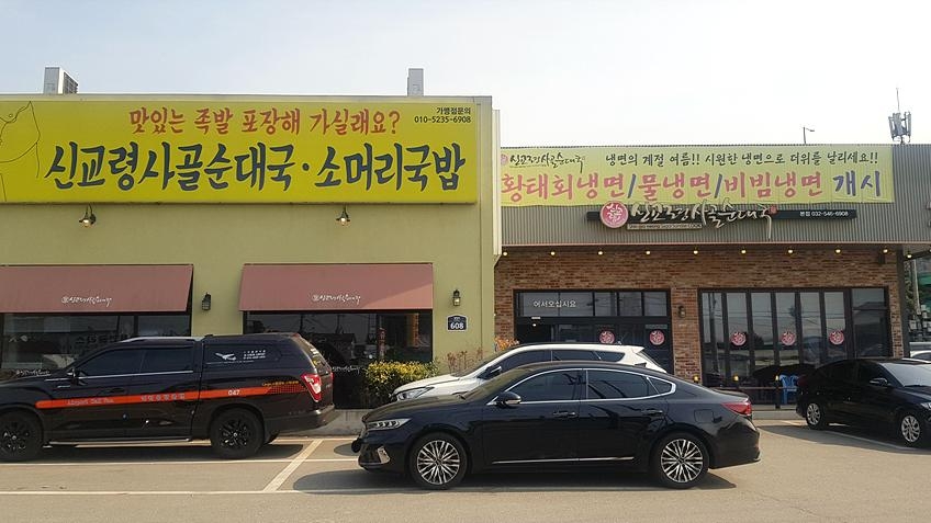 신교령사골순대국 본점은 인천광역시 계양구 벌말로 경인아라뱃길 하야소공원 맞은편에 있다. 이곳은 도심지 외곽이고 주차장이 넓은 주차장이 있어 대중교통보다는 자가용을 이용하여 방문하는 것이 좀 더 편리하다. 신교령사골순대국 본점은 사골로 우려낸 깔끔한 순댓국으로 사랑받고 있는 순댓국 동네 맛집이다. 매장은 1층 단독 건물로 내부는 넓고 쾌적한 모습이다. 대표 메뉴로는 순댓국, 술국, 소머리국밥 등이 있다. 특식인 수제족발, 순대전골이 손님들에게 인기가 많다. 농림축산식품부 제공 안심식당으로 인증받은 음식점이다.