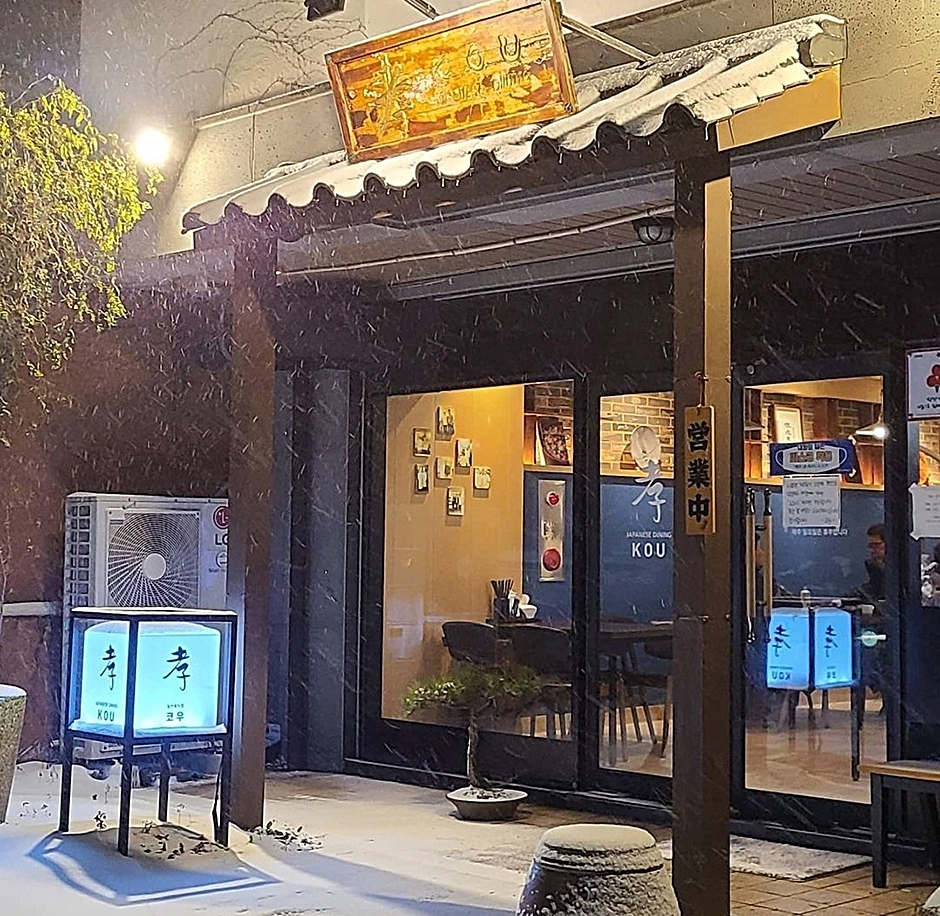 코우는 제주 서귀포경찰서 근처 주택가 골목에 자리 잡고 있는 일식당이다. 신선한 해산물을 바탕으로 한 다양한 일식 요리를 선보이며, 특히 당일 숙성한 생선회를 사용한 스시가 인기 메뉴이다. 백된장에 절여 고소하게 구워낸 은대구 사이교야끼, 금태 솥밥 등 각각 재료 본연의 맛을 살렸으며 사시미 모리아와세, 도미머리 조림, 메로 데리야끼 등 다양한 일식 메뉴도 함께 제공되어 폭넓게 즐길 수 있다. 코우는 예약제로 운영되며, 예약은 당일에만 가능하다. 내부 좌석 수가 많지 않아 조용하고 프라이빗한 분위기를 느낄 수 있지만, 공간이 협소한 관계로 6인 이상의 단체 방문은 어려울 수 있다.
