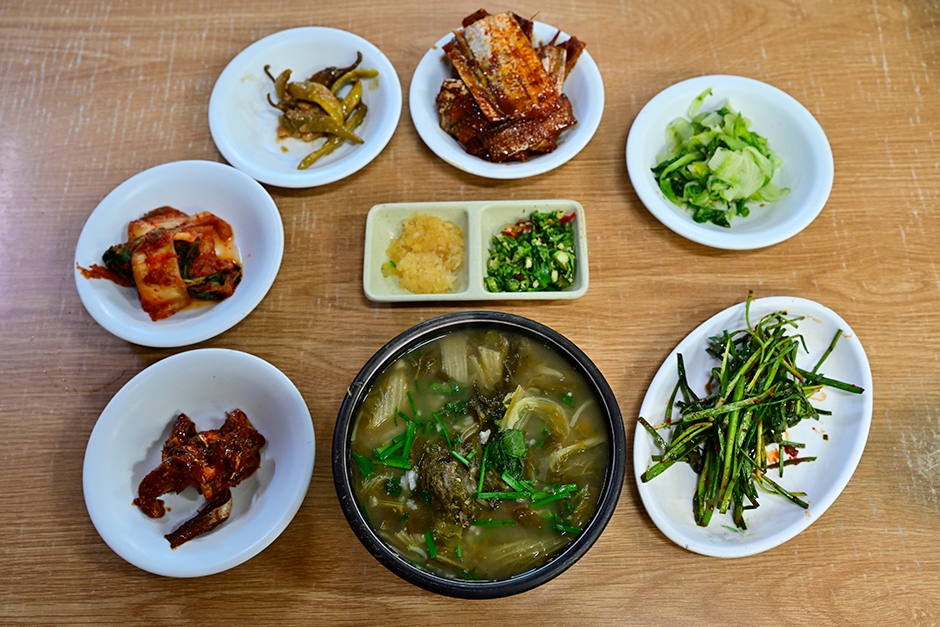 원조석대추어탕은 부산 반여농산물시장역 인근에 자리한 추어탕 전문 음식점으로, 한 자리에서 40여 년 가까이 영업을 이어온 식당이다. 이곳의 추어탕은 장작불을 사용해 커다란 가마솥에 끓이는 방식으로 미꾸라지를 직접 손질한 후 3시간 이상 푹 고아내 깊고 진한 국물 맛이 특징이다. 추어탕은 기본 반찬들과 곁들여 먹으면 더욱 좋은데, 함께 제공되는 김치, 미역줄기 무침, 나물, 갈치조림, 전어젓갈, 파절이, 고추, 다진 마늘 등 밑반찬과 함께 다양한 조합으로 추어탕을 즐길 수 있다. 추어탕 외에도 가오리찜, 논고동무침 같은 별미 메뉴도 준비되어 있어 손님들에게도 좋은 선택지가 된다.