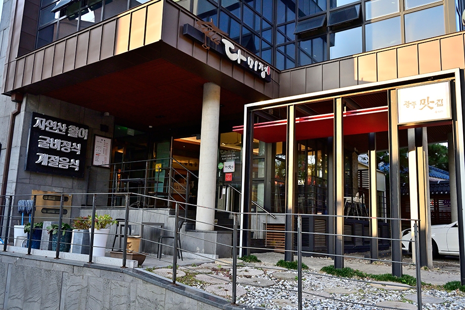 풍암생활체육공원 근처에 있는 다미정의 기와지붕과 입구는 차분하고 감각적인 분위기를 자아낸다. 기둥 사이의 공간으로 대기석들이 있어 편안하게 기다릴 수 있다. 1층 홀은 6~7개의 테이블 입식 자리가 있고, 미리 예약해야 별도로 마련된 룸으로 배정받을 수 있다. 프라이빗한 룸 공간은 가족이나 소중한 사람들을 위해 준비한, 중요한 식사 자리에 좋으며, 단체 모임을 하기에도 좋다. 지하 1층에는 룸 2개와 테이블 4개 정도 되는 공간이 있어 다양한 자리에서 식사할 수 있다. 얼음과 녹차가루가 담긴 큰 그릇이 기본으로 세팅되어 녹찻물에 고소한 굴비를 적셔서 먹는 방식이다. 주차장은 따로 없기 때문에 식당 근처 길가에 해야 한다.