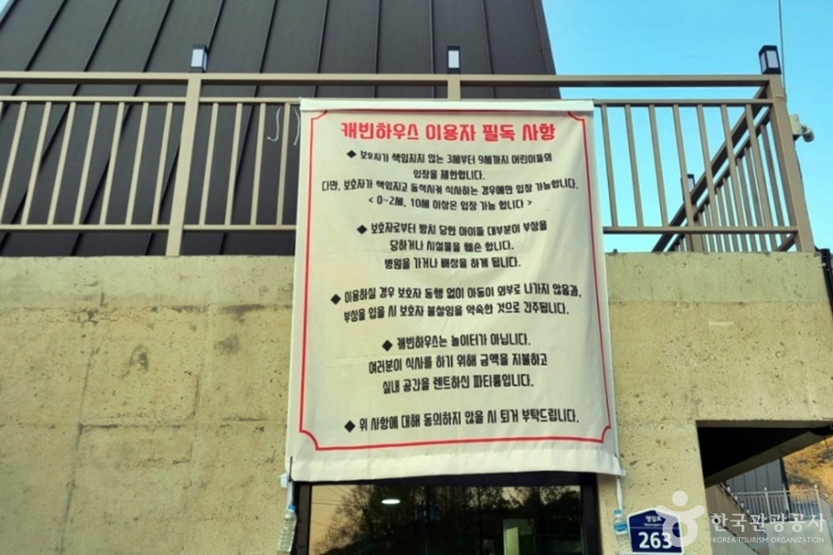 개인 룸과 숯불, 집기, 일회용품 등을 포함해 캠핑하러 가서 고기를 구워 먹는 느낌을 낼 수 있도록 준비되어 있다. 이용 시간은 3시간이며 예약금 1만 원은 케빈 이용료로 대체된다. 1층 매점에서 고기, 라면, 채소, 소시지, 집기류, 음료 등을 필요한 만큼 구매한 후 2층의 케빈 룸이나 바깥쪽 야외 텐트로 된 바비큐장 등 지정된 곳으로 가면 된다.