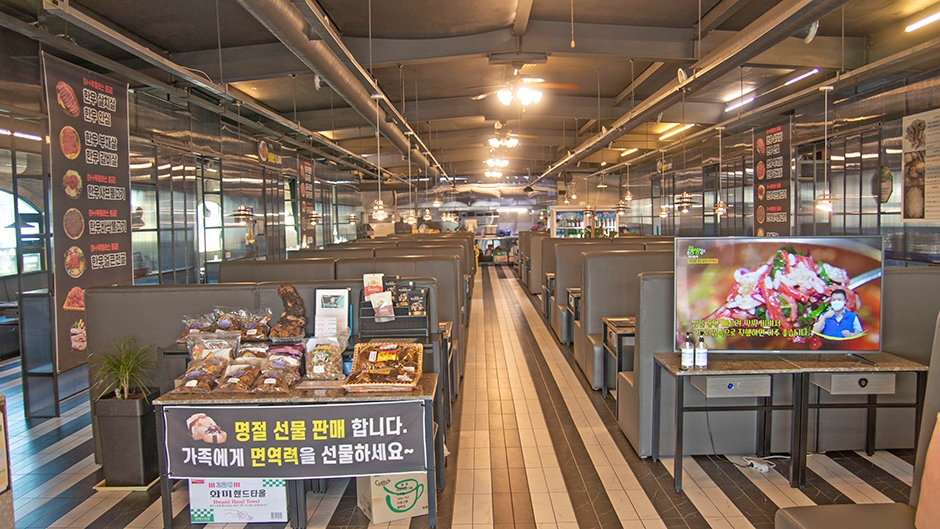 산들마을은 경기도 김포시 양촌읍 누산리, 모아 아울렛 맞은편에 있는 농림축산식품부에서 선정한 안심 한우 전문 식당이다. 룸이 별도로 준비되어 있으며 테이블 간격이 넓어서 편안하게 식사할 수 있다. 최고등급 한우(1++등급))를 사용하고 있어 고기의 육즙부터가 다르다. 한우 전문점답게 한우샤브, 한우불고기, 한우물회, 육회 등 메뉴를 선택할 수 있고, 등심, 갈빗살 등 한우를 돌판에 구워 먹을 수도 있다. 다양한 장난감과 함께 유아 공간도 마련되어 있어 아이들과 함께 방문해도 좋다.