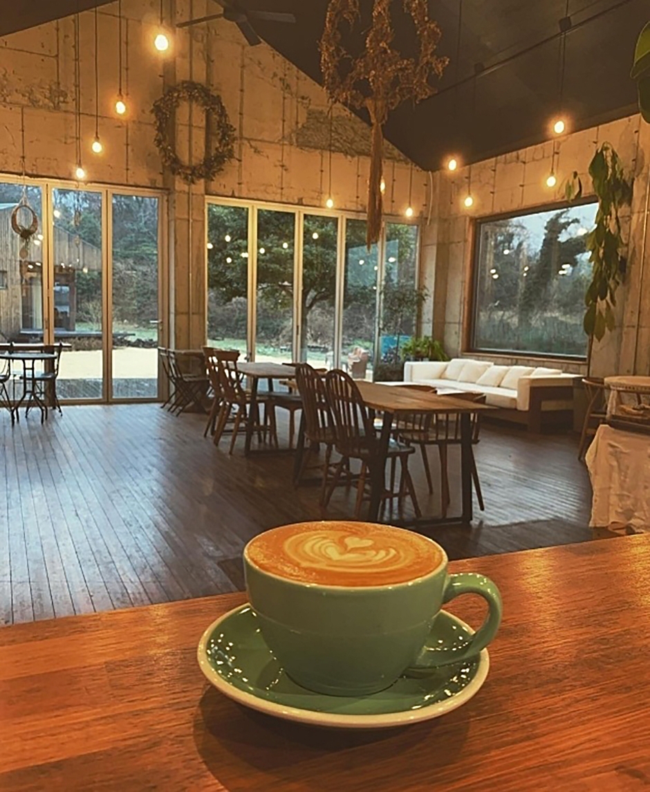 카페동백은 제주 동백동산의 끝자락에 자리잡은 아담하고 조용한 카페이다. 내부와 외부 모두 노출 콘크리트 벽에 창문 액자뷰가 유명하며, 입구의 빨간색 문은 포토존이기도 하다. 실내에 들어서면 큰창을 통해 보이는 넓은 들판과 허름한 창고가 펼쳐지며, 실내를 지나 잔디마당 으로 들어서면 아담한 꽃밭과 온실 포토존이 계절에 따라, 날씨에 따라 다른 자연을 감상하기에 적합하다. 람사르습지지정 동백동산 숲 옆에 자리잡았기에 숲산책 후 쉬어가는카페로 다녀가기 좋다. 대표 메뉴는 옥수수 팬케이크인 콘프리터이며, 피칸 프렌치 토스트와 동백 치즈케이크 등 다양한 디저트 메뉴가 준비되어 있다. 음료 역시 커피와 티 메뉴 등이 있어 취향에 맞게 선택해 즐길 수 있다.