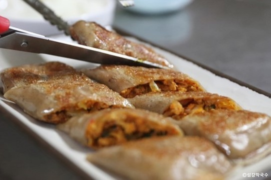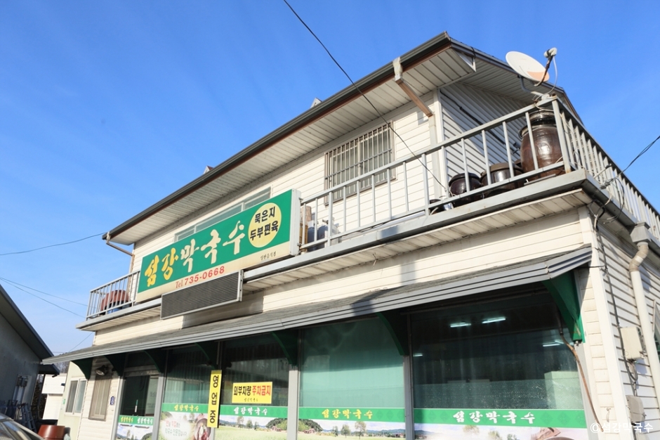 섬강막국수는 강원도 원주에 있는 막국수 전문점이다. 원주 간현 유원지 근처에 있어서 다양한 활동을 즐긴 후에 들를 수 있는 식당이다. 강원도 향토 음식인 막국수, 수육, 감자만두, 메밀전병을 메뉴로 하는 식당이다. 보드라운 수육은 부추와 버섯찜은 올려 내고, 막국수는 주문 즉시 면을 뽑아 퍼지지 않고 쫄깃한 면발을 자랑한다. 비빔막국수가 나오면 함께 나오는 육수 2 국자를 넣고 겨자를 약간 넣어 비벼 먹으면 된다. 내부는 식당의 연한만큼 세월의 흔적이 느껴진다. 하지만 깔끔하게 단정하게 관리되고 있어 기분 좋은 분위기이다. 주차는 매장 앞에 할 수 있으나 넓지 않아 주변에 이면도로나 골목길을 이용해야 할 때가 있다.