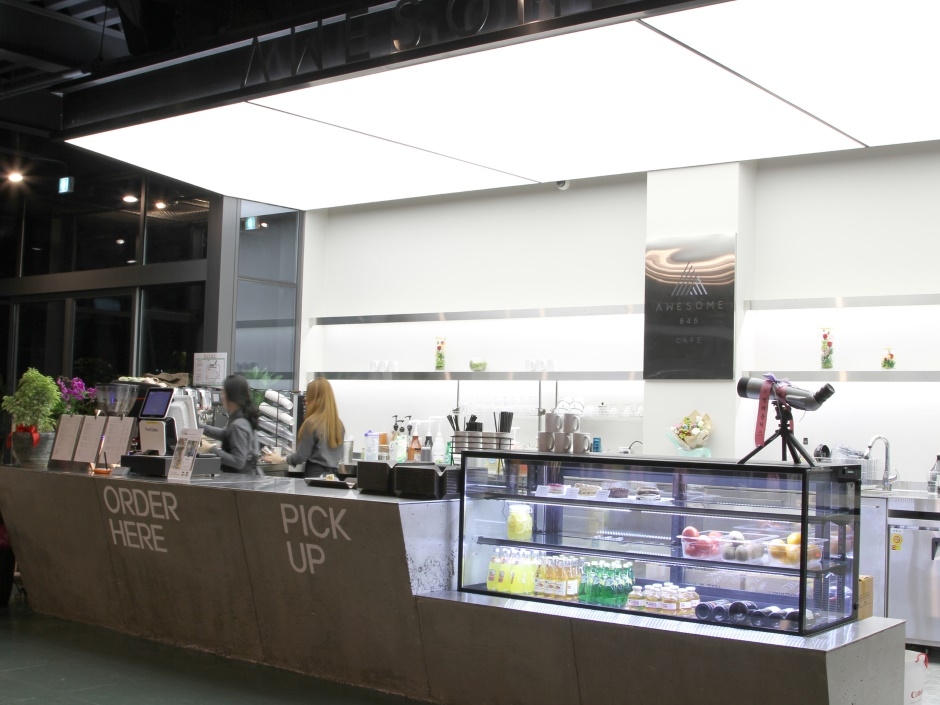 충청남도 공주시 계룡산 동학사로 올라가는 길목에 자리한 어썸 845는 천황봉의 ‘웅장함’을 담은 영어 ‘WESOME’과 ‘천황봉 높이 845m’를 결합하여 탄생했다. 어썸 845는 야외 정원과 주차장, 지하 1층에서 지상 3층까지 있으며 입체적이고 세련된 디자인으로 꾸며져 있어 낮에는 물론, 밤에도 대형 보름달 벌룬과 함께 취향에 따라 휴식을 취하고 힐링할 수 있다. 특히, 회전목마를 타는 듯한 재미를 느낄 수 있는 3층의 회전하는 카페는 1시간 동안 360도 회전하기 때문에 주위 풍경을 어느 테이블에서나 감상할 수 있다.