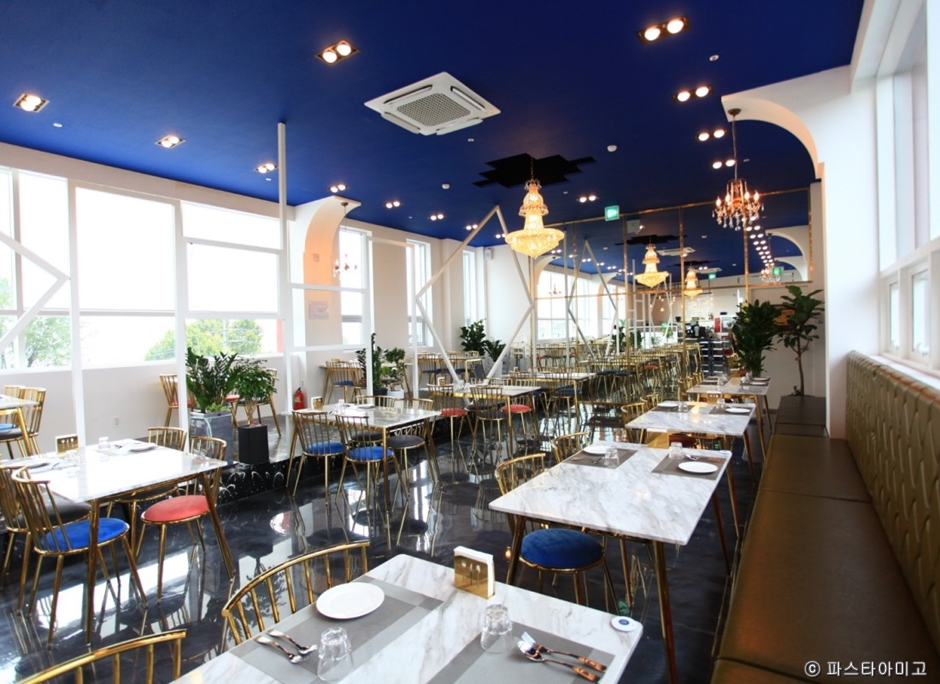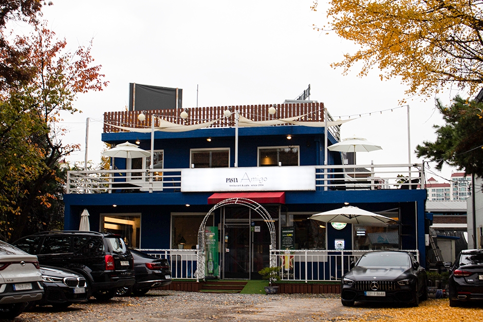 ?파스타아미고는 구리시 토평동에 있는 이탈리안 레스토랑이다. 자차를 이용해서 가도 수월한 위치이지만 주차 공간이 널찍해서 주차를 편하게 할 수 있다. 진한 청색의 단독 건물인데 양옥 가정집을 개조한 듯하다. 1, 2층에 파라솔이 있는 테라스 자리가 있고 1층은 방으로 나누어져 있어 모임하기에 좋다. 창문이 커서 개방감이 있고 나누어진 공간마다 의자와 테이블이 달라서 다른 공간에 있는 듯 분위기가 다양하다.