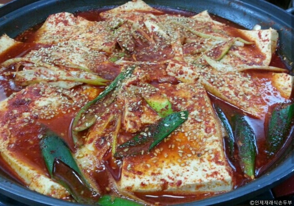 강원도 인제군 인제산촌민속박물관에서 가까운 손두부 맛집이다. 인제에서 나는 콩만 사용하여 매일 두부를 만들어 요리에 사용한다. 대표 메뉴는 손두부로 만든 짜박두부와 들기름 두부구이다. 아침 10시 오픈과 동시에 테이블이 다 차는 곳으로 백종원의 삼대 천왕을 비롯해 여러 프로그램에서 소개한 곳이다. 짜박두부는 찌개보다 국물이 적어 자박자박하고 칼칼한 양념으로 끓여 먹는데, 다른 반찬이 없어도 밥 한 공기를 비울 수 있다. 물론 기본 찬으로 강원도식 밥반찬들도 정갈하게 잘 나온다. 들기름 두부구이는 도톰한 손두부를 들기름으로 구워내는데 고소하고 건강한 맛이다.