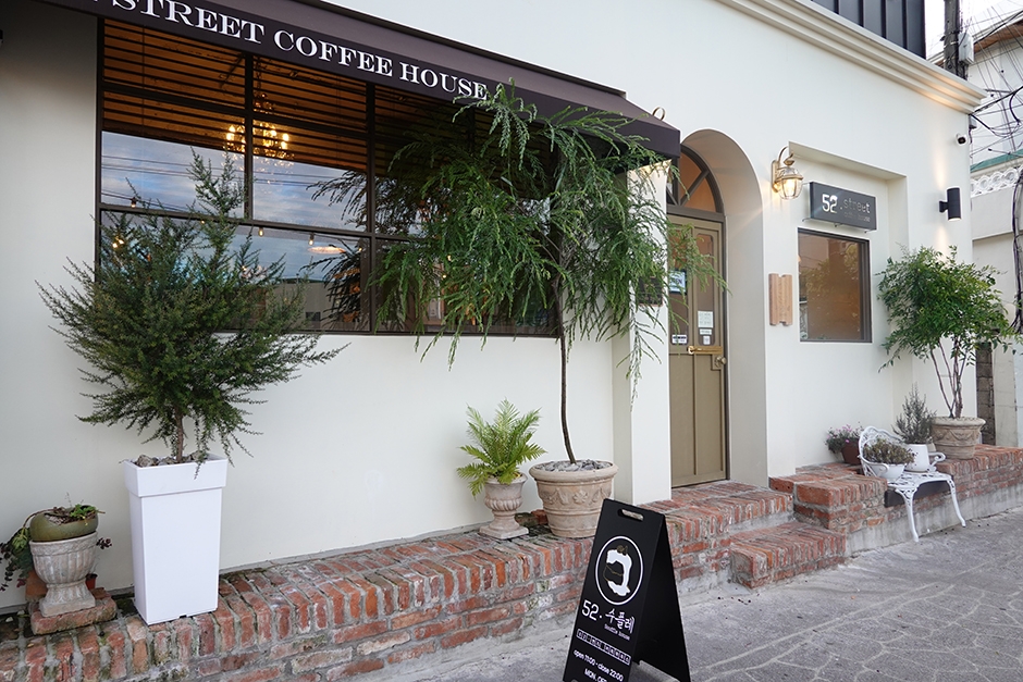 52번가는 제주 제주시 도남동에 위치한 아담하고 감성적인 디저트 카페로, 수플레와 크로플을 중심으로 한 다양한 디저트 메뉴를 즐길 수 있는 곳이다. 실내는 찻잔과 접시, 앤틱한 찬장, 빈티지한 램프와 레이스 커튼 등 아기자기한 소품들로 꾸며져 있어 전반적으로 따뜻하고 아늑한 분위기 덕분에 사진 찍기에도 좋고, 조용한 대화를 나누기에도 좋다. 이곳의 대표 메뉴는 천 번을 휘저어 만든 52번가 수플레이다. 또 다른 인기 메뉴인 ‘브라운치즈 크로플’은 브라운치즈가 올라가 있어 고소하고 짭조름한 맛이 크로플과 잘 어우러진다. 이 외에도 ‘모짜르트 커피’, ‘런던 크림 커피’ 등 독특하고 이색적인 커피 메뉴들도 준비되어 있어 색다른 커피 경험을 원하는 이들에게도 만족감을 준다. 주변에는 제주도민속자연사박물관, 삼성혈, 제주원도심 등 함께 둘러보기 좋은 관광지가 있다.