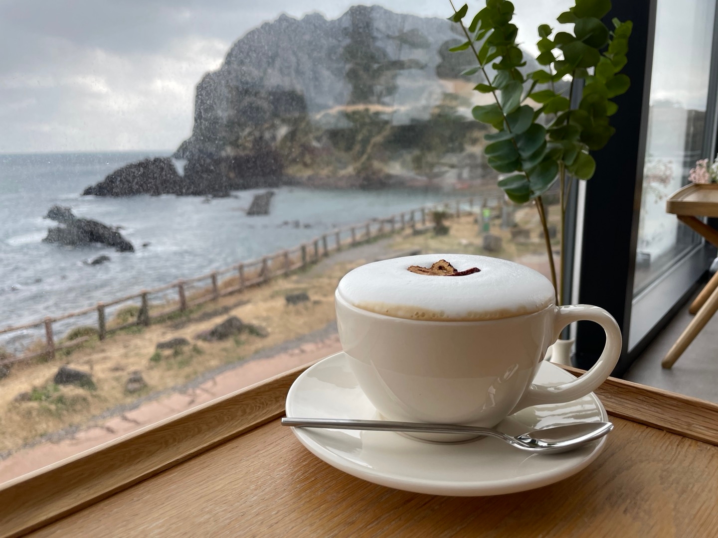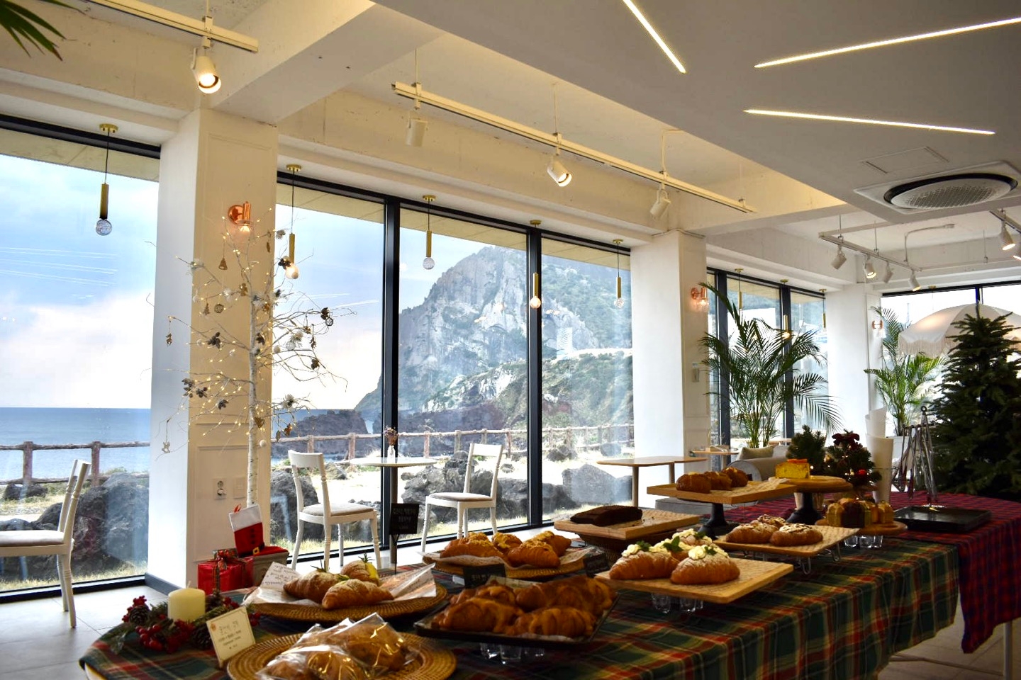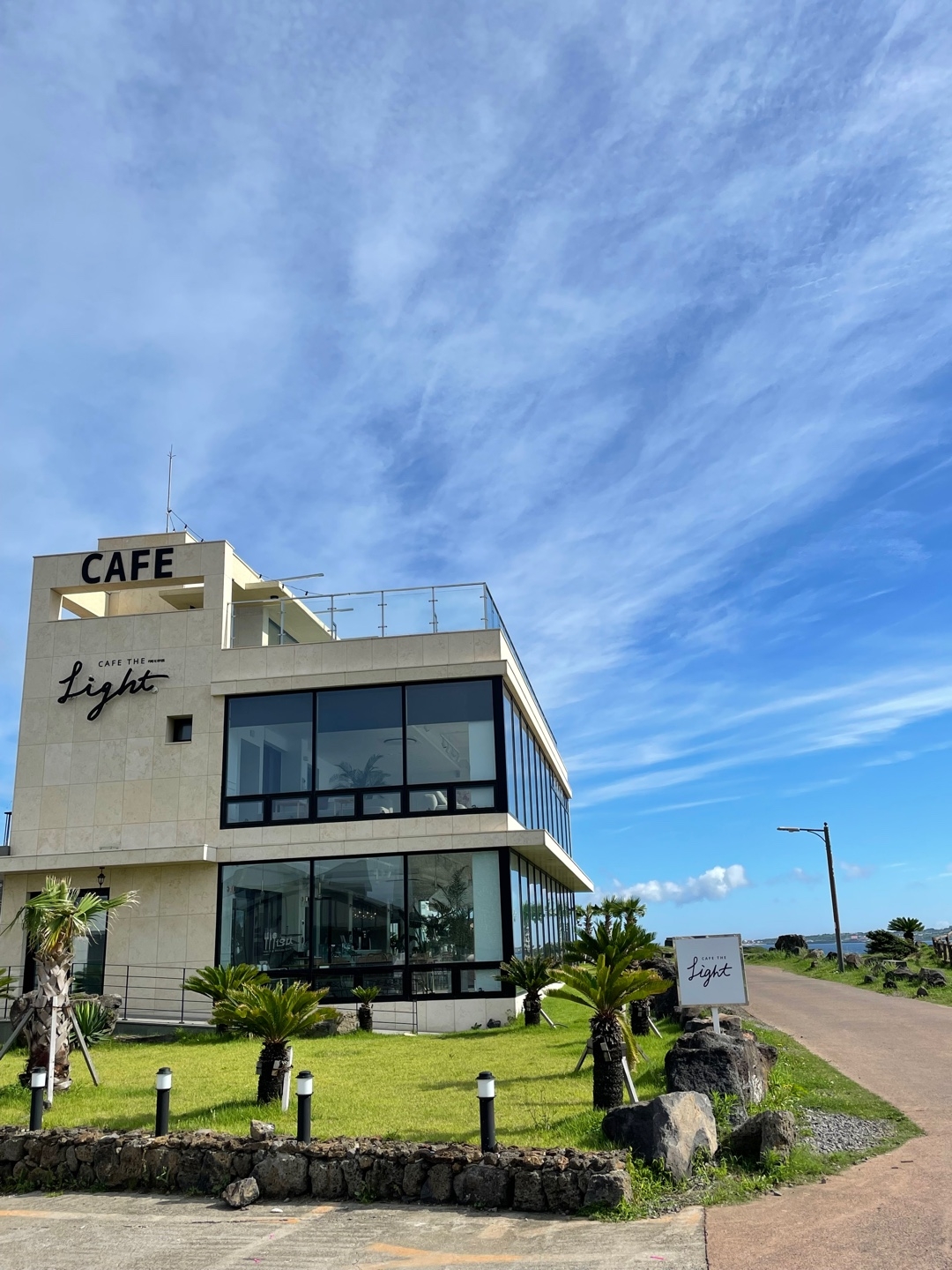 카페 더라이트는 제주 성산일출봉과 우도로 향하는 성산포항 종합여객터미널 사이에 위치한 카페이다. ‘주변을 밝혀주는 빛, 평안함이 스며드는 곳’이라는 의미를 담아 설계된 이곳은 전체적으로 깔끔하고 따뜻한 분위기의 인테리어가 인상적이며, 자연광이 가득 들어오는 큰 통유리창을 통해 성산일출봉과 우도를 한눈에 바라볼 수 있다. 탁 트인 전망 덕분에 커피 한 잔을 마시며 풍경을 감상하는 것이 힐링이 된다. 이곳에서 제공하는 다양한 디저트와 음료는 모두 수제로 만들어지며, 비주얼도 좋아 사진을 찍기에도 좋다. 루프탑에 마련된 그네 포토존은 많은 방문객들이 인증샷을 남기는 인기 장소로, 탁 트인 풍경과 어우러진 감성적인 분위기를 만끽할 수 있다. 인근에는 성산일출봉, 광치기해변, 섭지코지 등 함께 둘러보기 좋은 아름다운 여행지가 많아, 제주 여행 일정 중 들러볼 만한 명소로 추천된다.