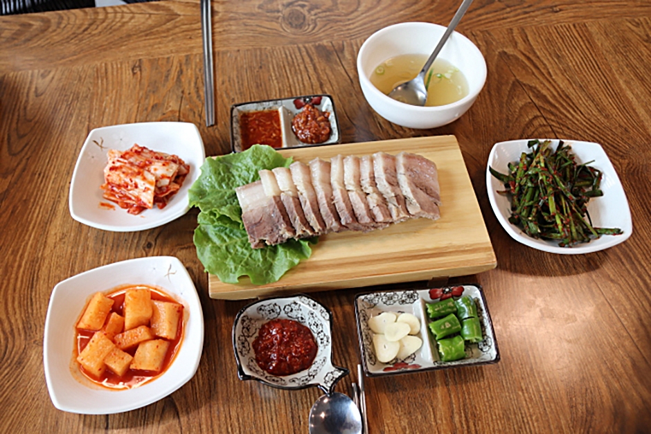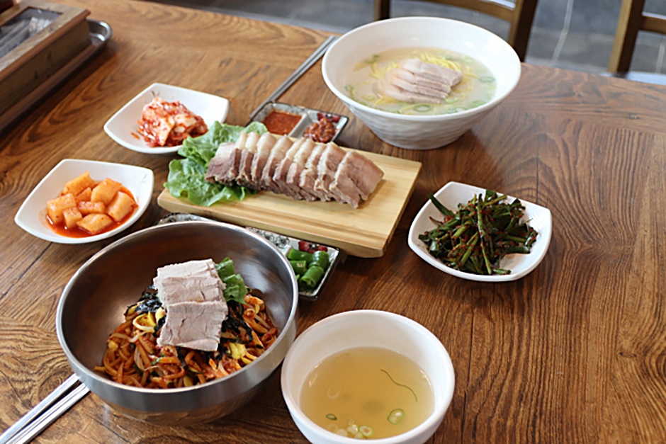 앙끄레국수 서귀포본점은 제주월드컵경기장 인근, 대륜동주민센터 뒤편에 자리 잡고 있는 제주 국수 전문점이다. 이곳은 제주산 돼지고기만을 사용하여 맛을 낸 다양한 국수 요리를 선보이고 있다. 대표 메뉴인 고기국수는 돼지 사골을 12시간 이상 정성껏 푹 고아 깊고 진한 국물 맛을 내며, 여기에 치차즙을 활용한 쫄깃한 면을 더해 건강하고 깔끔한 국수를 제공한다. 고기국수 외에도 매콤한 비빔국수, 성게국수, 바삭하고 고소한 한치부추전 등 다양한 메뉴가 준비되어 있으며, 여러 메뉴를 함께 즐길 수 있도록 구성된 가성비 좋은 세트 메뉴도 마련되어 있다. 또한 어린이용 의자와 같은 편의 시설도 잘 갖추어져 있어 가족 단위 여행객이나 단체 손님이 편하게 이용할 수 있다.