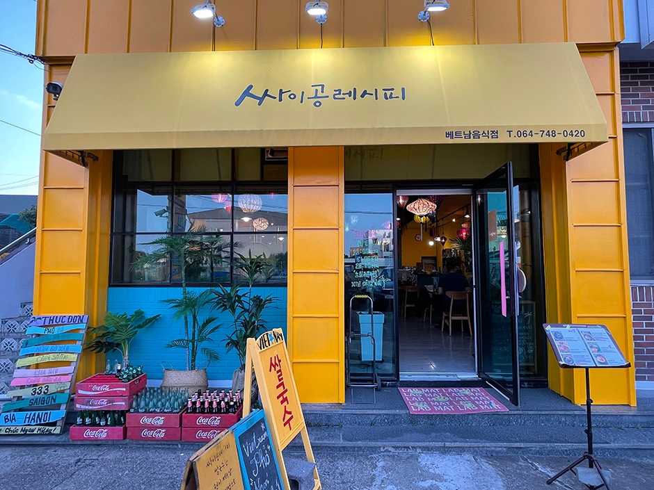 싸이공레시피는 제주 애월에 위치한 베트남 음식 전문점으로, 베트남 현지의 전통 레시피를 그대로 활용해 정통의 맛을 재현하는 곳이다. 이 식당에서는 대표 메뉴인 퍼보(소고기 쌀국수)와 퍼보타이(익히지 않은 소고기가 얹어진 쌀국수), 분보싸오(볶음 쌀국수)를 포함해 다양한 베트남 요리를 선보인다. 신선한 채소, 고기 등으로 구성되어 현지의 맛을 그대로 느낄 수 있다. 식당 내부는 소박하면서도 따뜻한 분위기로 꾸며져 있으며, 테이블과 식기, 조명 등 세세한 요소들이 베트남 현지의 동네 식당을 떠올리게 한다. 베트남 특유의 정겨운 느낌을 제주에서 느낄 수 있다는 점이 이곳만의 매력이다. 식당 뒤편에는 작은 마당이 있어 잠시 쉬어갈 수 있는데, 이 마당은 귤 박스로 아기자기하게 꾸며진 작은 화단이 있어 포토존으로도 인기가 많다.