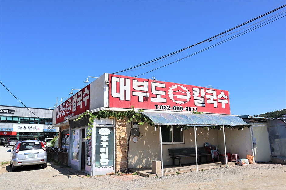 대부도손칼국수는 경기도 안산시 단원구 대부북동에 있는 한식당이다. 대표 메뉴는 바지락손칼국수이다. 푸짐하게 들어간 바지락과 진한 국물의 맛이 특징이다. 바지락 껍데기가 까져 있어 편하게 먹을 수 있다. 이외에도 들깨칼국수, 파전, 철판주꾸미를 판매하고 있다. 칼국수와 함께 먹는 김치는 겉절이, 열무김치, 깍두기가 준비되어 있다. 동동주가 무료이며 무제한으로 제공된다. 매장 내부는 넓고 쾌적하다. 좌석은 입식 테이블로 되어있다. 대기 손님을 위한 벤치와 그늘막이 있다. 가게 오른쪽에 넓은 주차 공간이 있어 편하게 이용할 수 있다.