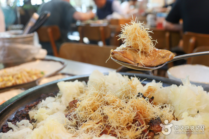 시흥 월곶에 위치한 퓨전 굽는 삼계탕은 건강 요소를 극대화한 굽는 삼계탕을 선보이는 맛집이다. 대표 메뉴는 달군 돌판 위에 당일 도정한 흑미밥과 은이, 산삼배양근, 구운 닭을 올린 눈꽃 삼계탕이다. 일반적인 삼계탕과 달리 구운 닭이라 특유의 고소한 맛이 강하게 느껴지며, 닭, 산삼배양근, 말린 대추를 넣고 끓여낸 국물 맛도 일품이다.