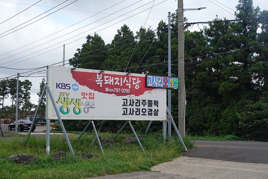 복돼지식당은 제주도의 전통과 맛을 한껏 느낄 수 있는 식당으로, 제주 성읍민속마을 북쪽에 자리잡고 있다. 제주 아주머니가 직접 키운 신선한 농산물을 활용해 정성스럽게 차린 제철 밥상을 제공하는 것이 큰 특징이다. 복돼지식당의 대표 메뉴는 고사리오겹살, 고사리육개장, 고사리비빔밥 등으로, 모두 제주산 생고사리를 듬뿍 넣은 특별한 요리들이다. 이곳에서 사용하는 고사리는 직접 채취한 생고사리로, 부드럽고 야들야들한 식감이 뛰어나 많은 관광객뿐만 아니라 제주 현지 주민들에게도 큰 인기를 얻고 있다. 식당 내부는 넓고 쾌적하여 단체 손님도 여유롭게 식사할 수 있으며, 넓은 전용 주차장도 마련되어 있어 차량 이용 시에도 편리하다. 혼잡을 줄이고 보다 원활한 이용을 위해 예약제로 운영되고 있으니 방문 전 예약은 필수다.