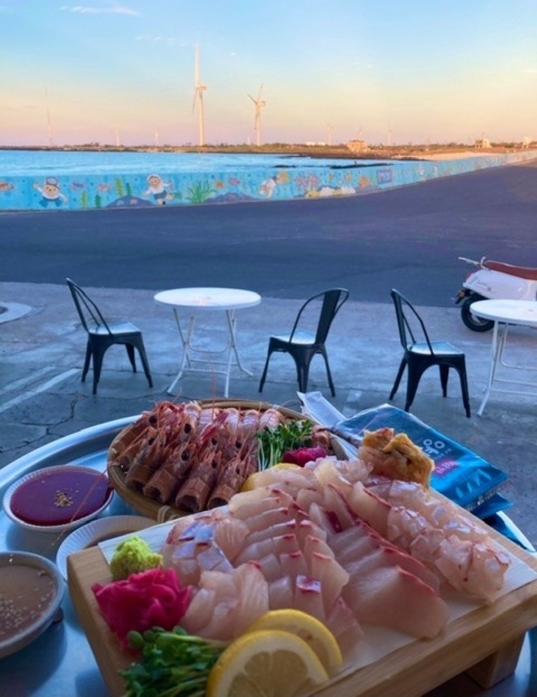 김녕오라이는 제주도 김녕해수욕장 인근에 위치한 횟집으로 여행객은 물로 현지인들도 자주 찾는 횟집이다. 자연산 회를 전문으로 판매하며, 신선한 해산물을 활용한 다양한 메뉴를 자랑한다. 대표 메뉴인 '돔베사시미'는 도마 위에 올려 제공되는 회 세트로, 매일 새롭게 들어오는 횟감에 따라 구성이 달라지기 때문에 방문할 때마다 다른 즐거움을 맛볼 수 있다. 또 다른 인기 메뉴인 해산물모둠 역시 그날그날 들어오는 신선한 해산물로 구성되며, 제철 식재료를 중심으로 제공되어 제주 바다의 풍미를 제대로 느낄 수 있다. 숯불 가마살 머리구이 한판은 생선 머리를 숯불에 구워 고소하고 쫄깃한 식감을 자랑하며, 딱새우회와 고등어 숯불구이, 딱새우라면 등도 인기 있는 메뉴로 함께 즐기기 좋다.