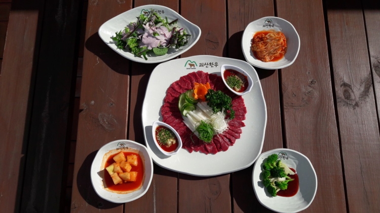 괴산한우타운은 충청북도 괴산군 칠성면 갈읍리에 있는 정육식당이다. 현대적인 외관과 깔끔한 분위기의 인테리어가 눈에 띈다. 내부에는 단체석이 마련되어 있어 모임에 적합하다. 대표 메뉴는 한우 전문가가 엄격한 선별 과정을 거쳐 손질한 각종 구이용 한우다. 이 밖에 한우 육회비빔밥, 육회 비빔냉면, 한우갈비탕, 한우불고기, 한우 육사시미 등도 맛볼 수 있다.