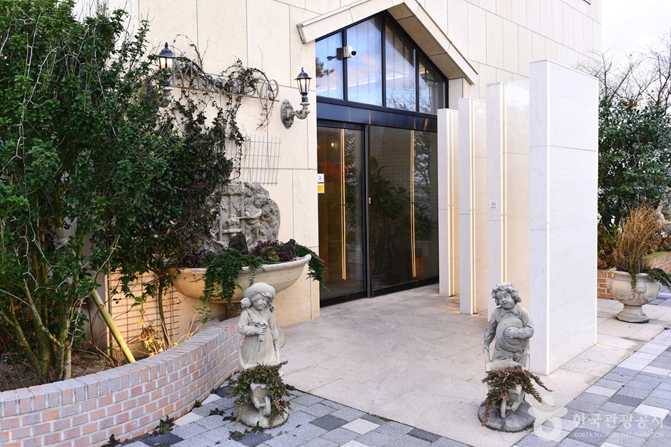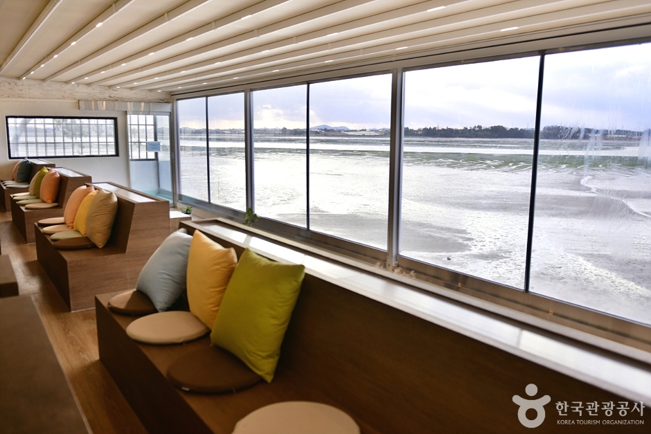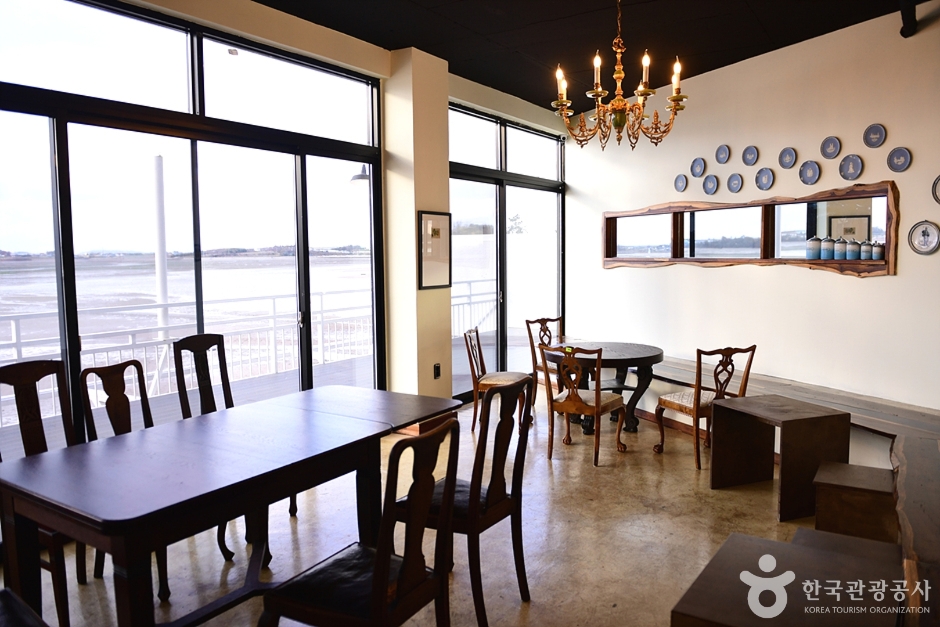 무안의 바다를 바라보는 뷰도 좋고 내부도 넓어 여유로운 시간을 보낼 수 있는 대형 카페이다. 감각적인 실내 인테리어가 바다 풍경과 어우러져 시원스러운 공간감이 돋보인다. 심플한 정사각의 건물 외관과 르네상스풍의 고전적인 분수가 무안의 바다와 어우러져 독특한 분위기를 자아낸다.