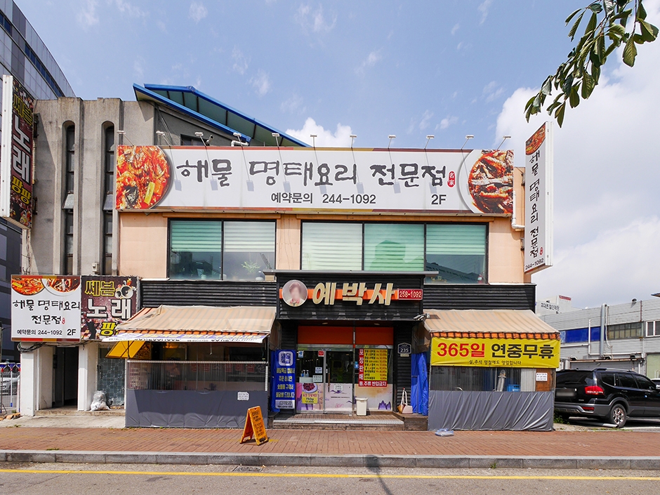 예박사는 수원 남문 수원천 근처에 있는 소 양념 갈빗살 전문점이다. 미국산 소를 취급하고 있어 저렴한 가격으로 소갈빗살을 즐길 수 있다. 주차장이 없어 매장 바로 옆에 있는 유료주차장을 이용해야 한다. 매장에서 식사하는 가격보다 저렴한 가격으로 고기를 포장 판매하고 있다. 양념 고기 전문점답게 불판도 특수주물로 제작하여 특허받은 실실이 판을 사용하여 불판을 바꾸지 않아도 되는 장점이 있다. 기본 상차림 비용은 없으나 쌈 채소는 추가 요금이 발생한다. 물, 술, 음료수, 추가 반찬은 모두 셀프로 이용하면 된다.