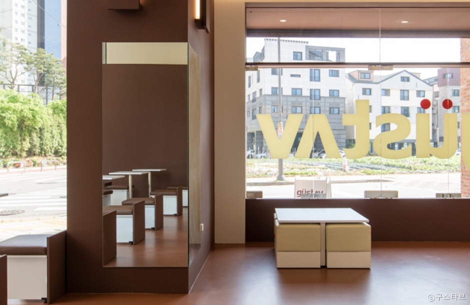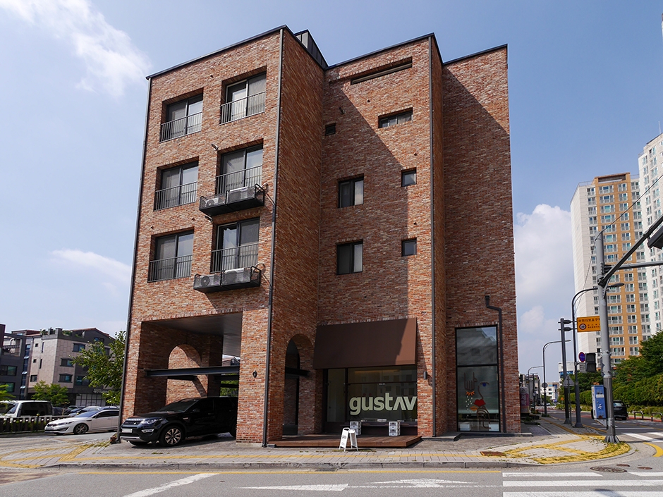 구스타브는 신동 카페거리에 있는 디저트 카페다. 붉은 벽돌 건물의 깔끔한 외관에 야외 좌석도 있다. 건물 내, 외관에 주차구역이 있지만 넉넉하지 않아 근처에 공영주차장을 이용하면 된다. 매장 내부는 크지 않지만 깔끔하고 아기자기한 장식으로 꾸며져 있다. 당일 생산, 당일 판매를 원칙으로 하고 있으며 매일 아침 디저트를 직접 제조해 판매한다. 빵은 매장 오픈 시간에 맞춰 구워진다. 야외 테라스석에만 반려동물 동반을 할 수 있다. 근처 수인분당선에선 매탄권선역이 있고 신동 수변공원이 있다.