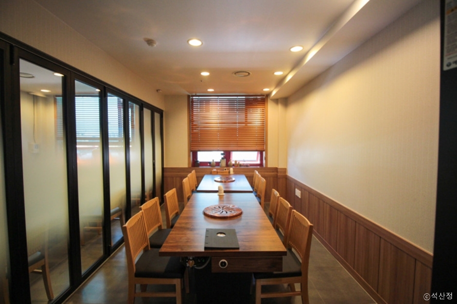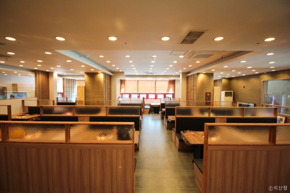 석산정은 수원시 세류동에 있는 40년 전통의 숯불구이 전문점이다. 1호선 세류역 1번 출구에서 1분 거리에 있어 대중교통을 이용해도 좋고 3층 건물에 넓은 주차장이 있어 차로 방문해도 주차 걱정이 없다. 가족 외식이나 단체 회식을 위해 많이 찾는 곳으로 식당 내부는 넓고 깔끔하다, 테이블마다 파티션 놓여있어 편하고 여유있는 식사를 즐길 수 있다. 또, 다양한 크기의 단독 룸이 있어 예약 후 이용할 수 있다. 고기 주문 시 직원이 직접 굽고 먹기 좋게 잘라줘서 편하고 매장에는 서빙 로봇이 돌아다니고 있어 눈길을 끈다.