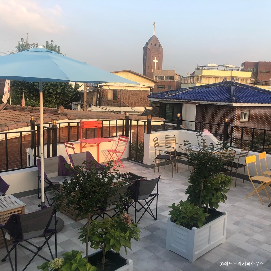 레드브릭 커피하우스는 수원화성 화서문 근처에 있는 카페이다. 별도의 주차장이 없어서 차량 이용 시 근처 공영주차장을 이용해야 한다. 주택가 벽돌 건물을 개조하여 만든 이곳은 곳곳에 식물들과 액자 등 다양한 소품들로 꾸며져 내부로 들어가면 크고 작은 크기의 소파 자리와 테이블이 골고루 배치되어 있다. 입구 옆 담벼락 나무 아래로 야외 테라스 자리가 있고 2층 루프탑에도 야외 자리가 있어 많은 인원을 수용할 수 있다. 이곳은 주변에 화성행궁과 화서공원, 팔달공원 등의 다양한 볼거리가 있다.