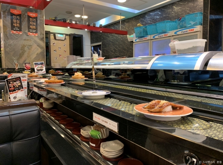 스시앤스시 본점은 경기도 성남시 수내역 근처에 있는 회전 초밥집이다. 수내역 본점 이외에도 서울과 용인, 대구에 지점이 있다. 수내역 2번 출구에서 도보로 5분 정도 거리이다. 매장은 층고가 높으며 넓고 실내가 밝아서 고급스러운 분위기이다. 회전 초밥 외에도 점심과 저녁 세트 메뉴가 있다. 자리에 앉으면 장국, 흑임자죽, 샐러드, 와사비가 기본으로 세팅되어 있다. 가게 내에서 먹는 것뿐 아니라 배달 또는 포장도 할 수 있다. 카운터 옆 쇼케이스에 포장과 배달 가능한 메뉴들을 전시하고 있다.