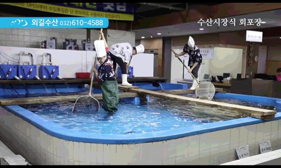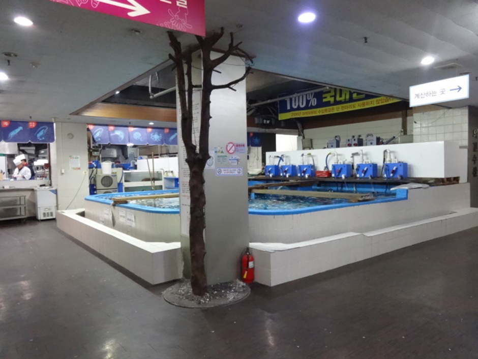 부천 상동역 부근 디아뜨갤러리 4차 2층에 있는 초대형 회센터다. 외곽순환도로를 달리다가 중동IC로 내려와서 유턴하면 쉽게 찾아갈 수 있다. 우럭, 광어 등의 기본 횟감은 물론 민어, 전통 물회, 겨울 대방어, 새조개 등을 산지 거래로 들여와 싱싱한 국내산 횟감을 부담 없이 즐길 수 있다. 또한 한 층에서 수산과 정육을 같이 운영하여 싱싱한 회와 소고기를 동시에 즐길 수 있다. 무려 1,240석의 좌석을 갖추고 있으며 수족관도 작은 수영장 크기 정도로 규모가 큰 식당이다. 또한 넓은 내부에 룸 형식의 공간도 있어 가족 모임이나 회식 장소로도 적합하다.