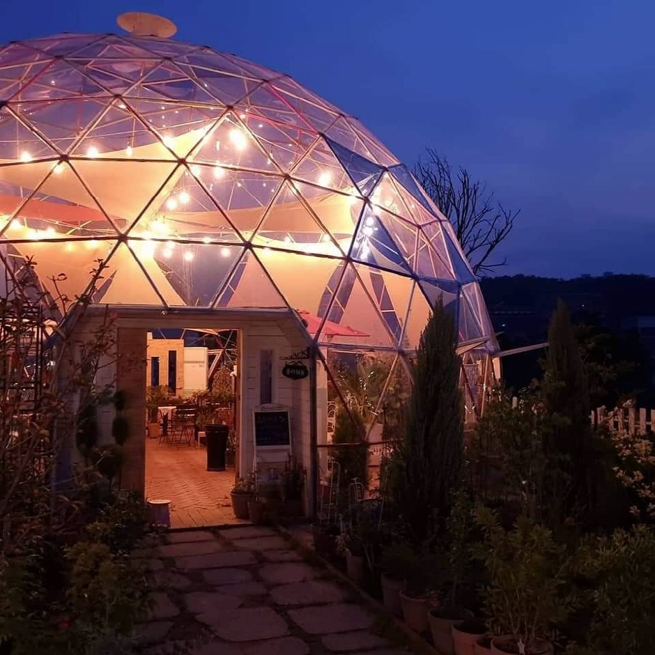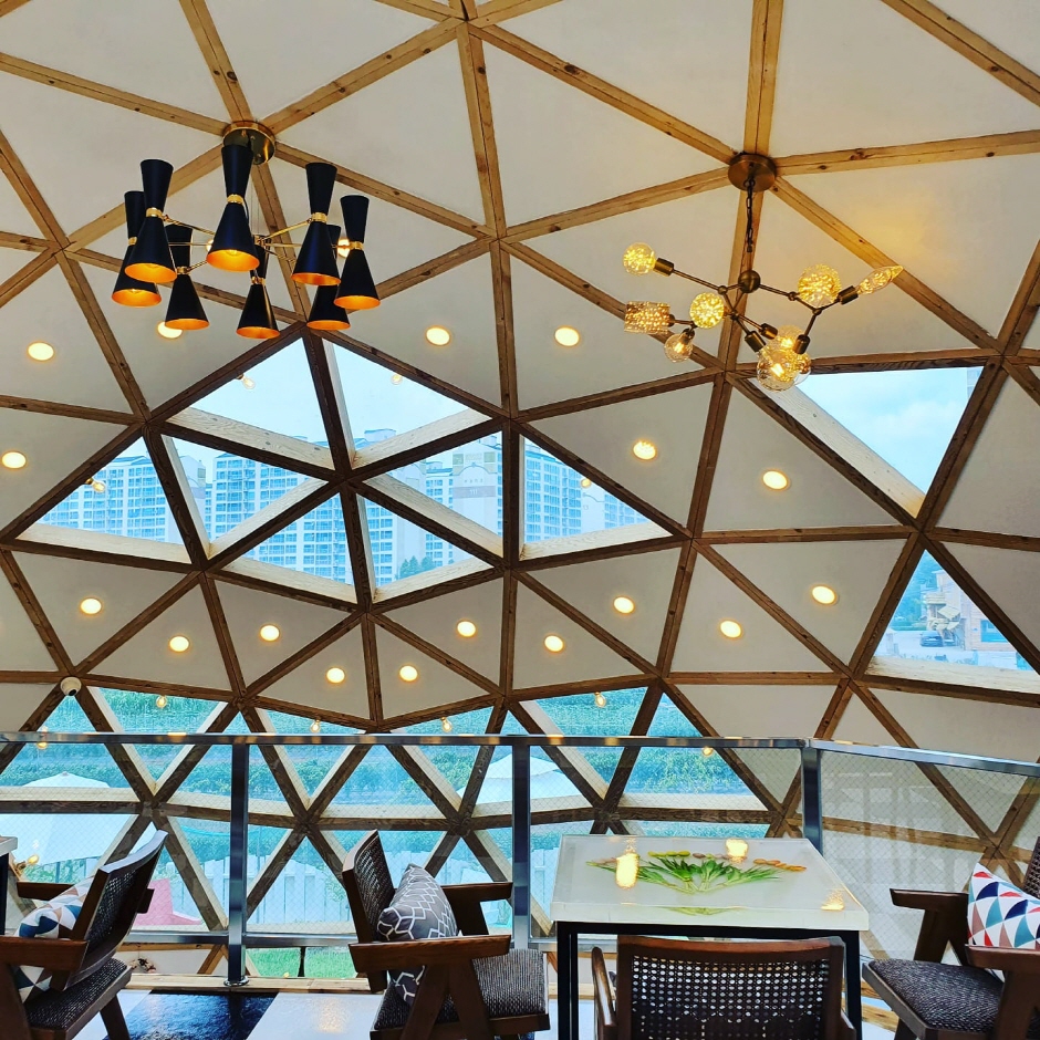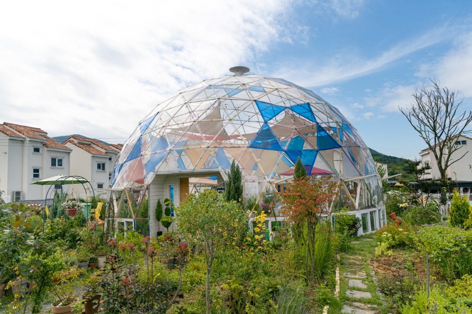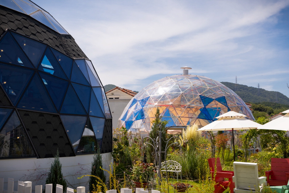 독특한 돔과 다양한 꽃이 어우러지는 식물 정원, 투명돔과 목조돔 2개의 돔건축으로 만들어진 카페플라워돔은 카페 주인인 부부가 4년을 걸쳐 가꾼 정원으로 250여 종의 독특한 꽃과 향기 나는 나무가 있는 힐링과 치유의 공간이다. 360개의 삼각형이 모여 돔 형태가 만들어진 지오데식 건축양식으로 처음 보는 유니크한 돔 카페로 알려져 있다. 하늘의 구름, 노을과 어우러진 환상적인 수채화 같은 정원과 투명돔의 조화는 오픈한 지 4개월 만에 여행의 추억을 남기고 싶은 최적으로 공간으로 알려졌다.