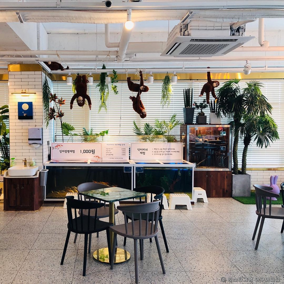 아쿠아파크는 남양주시 별내동에 있는 프리미엄 동물체험 카페이다. 어린아이부터 어른까지 누구나 좋아하는 이색동물을 체험할 수 있는 곳으로 사람과 동물이 함께 숨 쉬는 사계절 애니멀 테마 카페이다. 동물에게 직접 먹이를 주고 만지며 교감하는 도심 속 작은 동물원이라 할 수 있다. 가족 단위 나들이로 좋은 장소이다.