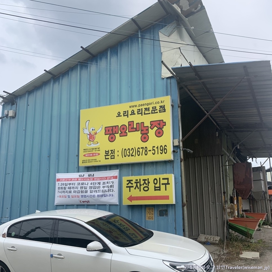 부천시 오정구 대장로에 있는 팽오리농장 본점이다. 주차장 입구 표지판을 따라가면 넓은 주차장 공간이 나타난다. 식당 안으로 들어서면 넓은 내부에, 낮은 테이블이 눈에 띈다. 팽오리는 가스 불을 이용해서 먹는 좌식 석과 연탄을 이용해서 먹는 테이블 석이 있다. 테이블 석은 낮은 자리로 약간의 불편함이 있지만 인기 있는 자리다. 연탄불로 야외에서 구워 먹는 그런 분위기이다. 전화로 예약하면 자리를 미리 세팅해 준다. ?메뉴는 뼈 없는 오리와 뼈 있는 오리, 오리 로스, 오리 훈제, 한방 오리백숙, 옻오리 백숙, 능이 오리백숙 등이 있다. 푸짐한 도리탕이 나오면 그 위에 부추가 한가득 올려진다. 도리탕을 먹고 나면 마지막에 밥을 볶아먹을 수 있는데, 철판 위에 볶음밥이 인기가 좋다. 기본 찬은 계란말이, 오이소박이, 김치, 고추, 양파 등이 제공된다.