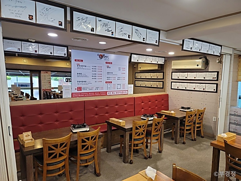 부경정은 분당 미금역 근처에 있는 동태요리전문점이다. 대표메뉴인 동태내장전골은 바지락과 새우로 국물을 내고, 동태살, 애, 곤, 알 등을 넣어 요리해 얼큰하고 진한 국물맛이 난다. 맑은 지리로도 주문 가능하다. 동태찜은 영양 풍부한 ‘황토 지장수 콩나물’과 동태와 내장이 감칠맛 나게 어우러지는 메뉴이다. 한 냄비 동태탕은 내장 없이 동태로만 조리해 국물이 시원하고 깔끔하며 뚝배기가 아닌 냄비에 조리한다. 사이드메뉴로 명태전도 인기 있다. 매장 안에는 유명인들의 사인이 붙어 있고, 약 40여 회에 걸쳐 TV에 소개되었다.