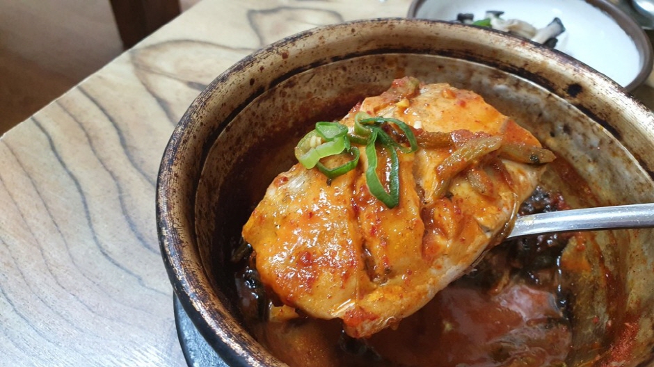 곰골식당은 2006년부터 지금까지 공주시의 대표 생선구이 맛집이다. 곰골식당의 대표메뉴는 생선구이인데 선어를 3년 이상 간수를 뺀 천일염을 이용하여 모든 손질과 염장 처리를 직접 시행하고 500도 이상의 화덕으로 빠르게 구워 겉은 바삭하고 속은 촉촉한 생선구이를 맛볼 수 있다. 그 외에 갈치조림도 인기가 좋은데 제주 갈치 특유의 향과 고소함과 매콤 달콤한 조림 양념이 더해져 밥 한 공기는 금방 해치울 수 있다. 이밖에 참숯제육석쇠한판과 제주 통갈치구이도 맛볼 수 있다. 그리고 매장 내에 단체석이 있어 회식장소로 안성맞춤이다.