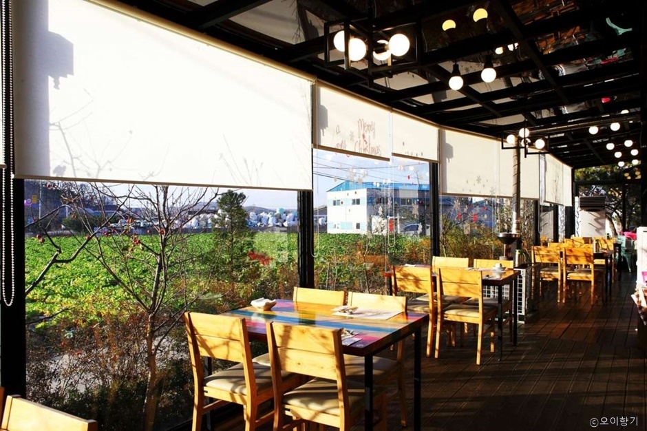 오이향기는 전류리포구 부근에 있는 한정식 전문점이다. 골목길을 조금 올라오면 숲 속에 간판과 함께 식당이 모습을 보인다. 다양한 나무가 식당 입구를 덮고 있어 정원에 있는 듯 차분하고 안정적인 분위기가 느껴진다. ?넓은 실내와 야외 좌석이 마련되어 있다. 숙주나물, 브로콜리, 멸치, 김치, 장아찌, 시금치 등 6가지 기본 반찬과 함께 샐러드부터 9가지 종류의 코스 요리가 나온다. 메뉴는 보리굴비 정식과 보리향기 코스, 오이 향기 코스가 있고 단품 요리를 먹을 수도 있다. 아늑하고 조용하여 가족 모임, 상견례 장소로 적합하다.