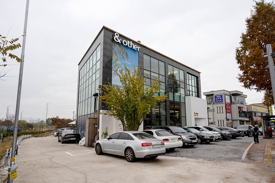 앤아더는 구리시 교문동에 있는 브런치 카페이다. 버스정류장 ‘한다리마을’에 내리면 바로 앞에 있어 대중교통 접근성이 좋다. 주차는 카페 건물 앞에 할 수 있어 편안하다. 흰색과 검은색의 적절한 배치로 현대적인 느낌을 주는 건물이다. 건물을 독채로 쓰고 있으며 자연 속에 있는 듯, 여유가 있다. 큰 창문이 많아 밝은 햇살이 가득 들어오며 천장도 높고 좌석 간격도 충분하다. 3층 루프탑은 실내와 실외가 있어 날씨에 상관없이 햇볕을 즐길 수 있다.